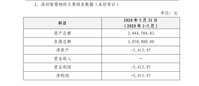 在公告中,beat·365(中国)-官方网站科技披露了深圳智慧树的主要财务数据(未经审计),如下图所示。